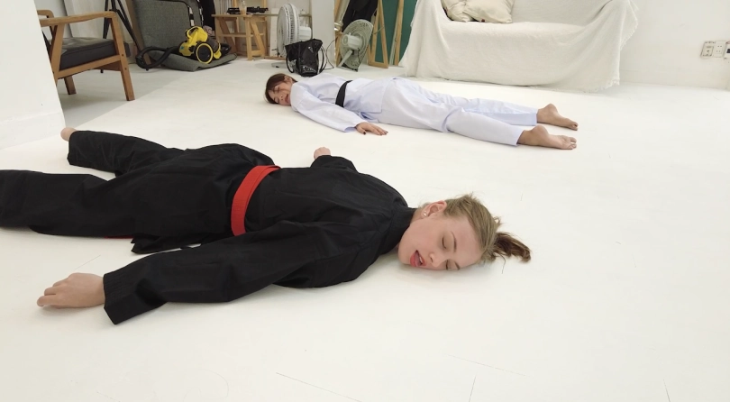 Karate girls Mimi (White Gi) and Emma challenges the camera man to a death trial. Who scored 4 wins would have the right to execute their opponent. The camera man easily dominated and sent the unfortunate girls to heaven.