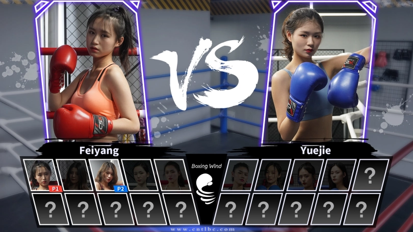 Feiyang (red glove) is a very lively and talkative girl.She came to the boxing competition for the first time and asked big sister Yuejie (blue glove) to be gentle with her. However, at the beginning of the competition, Feiyang hurt Yuejie, and the furious Yuejie launched a fierce attack on Feiyang with fists, elbows, knees and kicks...