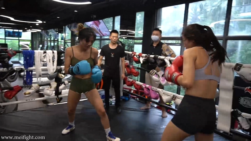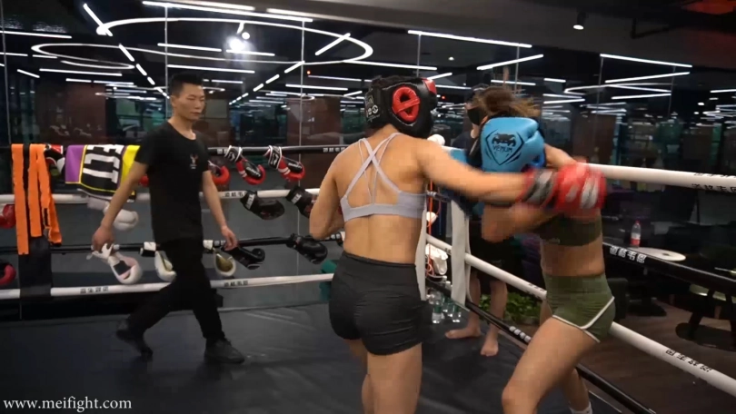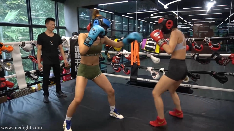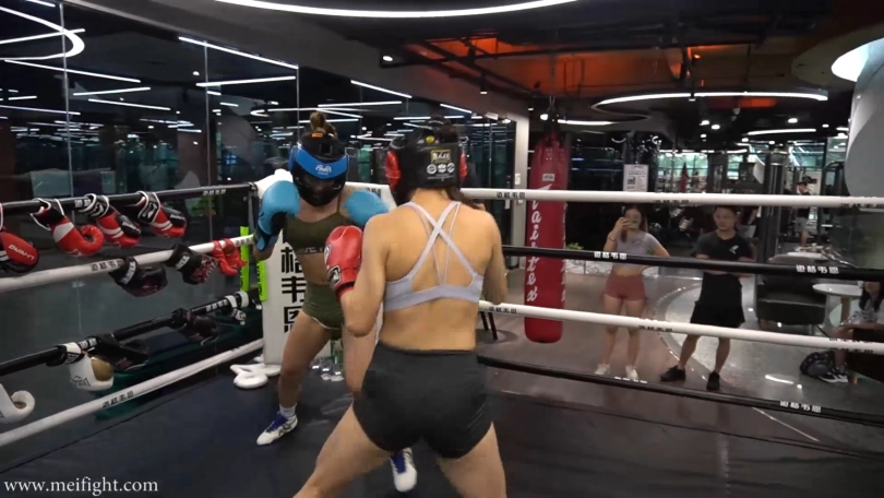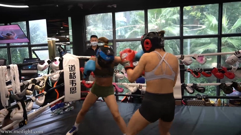 This is a real boxing. There is no script and no post-editing during the boxing process. Duyu looks stronger than Jjiao, but Jjiao has better physical strength. The boxing match is divided into five rounds. Two minutes per round. Wear protective gear for the first three rounds...